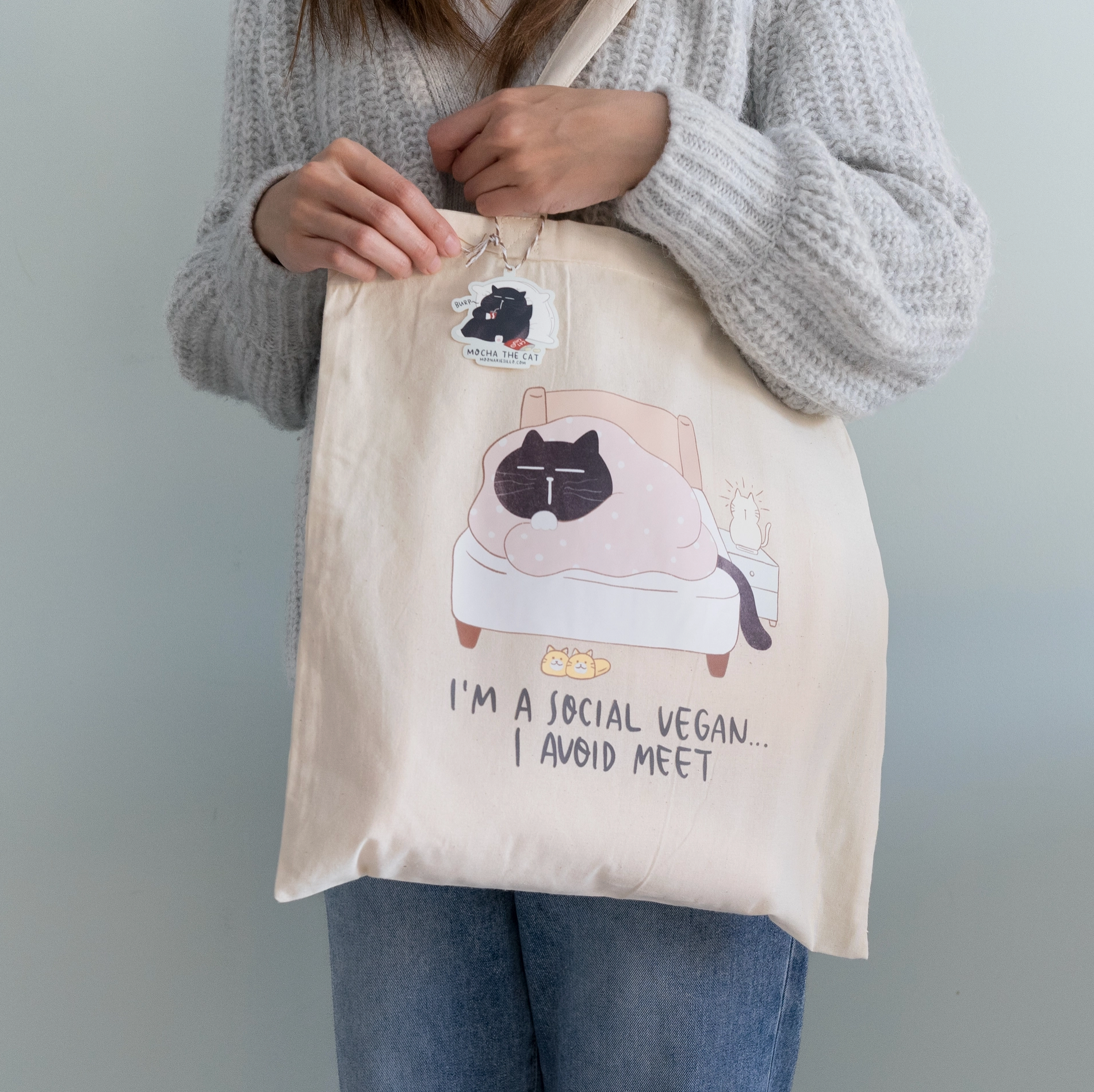 Moonaries Illo | I am a social vegan, I avoid meet Tote
